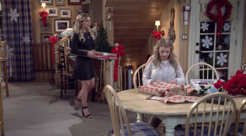 We get our warm, cozy Fuller House feeling as we see our favorite characters in the warmth of Christmas cheer. Our episode wraps up with everyone in matching family Christmas pajamas and there is lots of the best gift ever in the air: love.